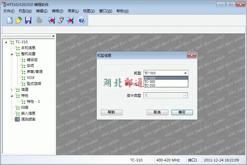 好易通 TC-510,TC-310,TC-320 对讲机写频软件适用频段:TC-510:136-174MHz,400-470MHz,470-520MHz,350-390MHzTC-320:400-420MHz,430-450MHz,450-470MHz,422-445MHzTC-310:400-420MHz,430-450MHz,450-470MHz